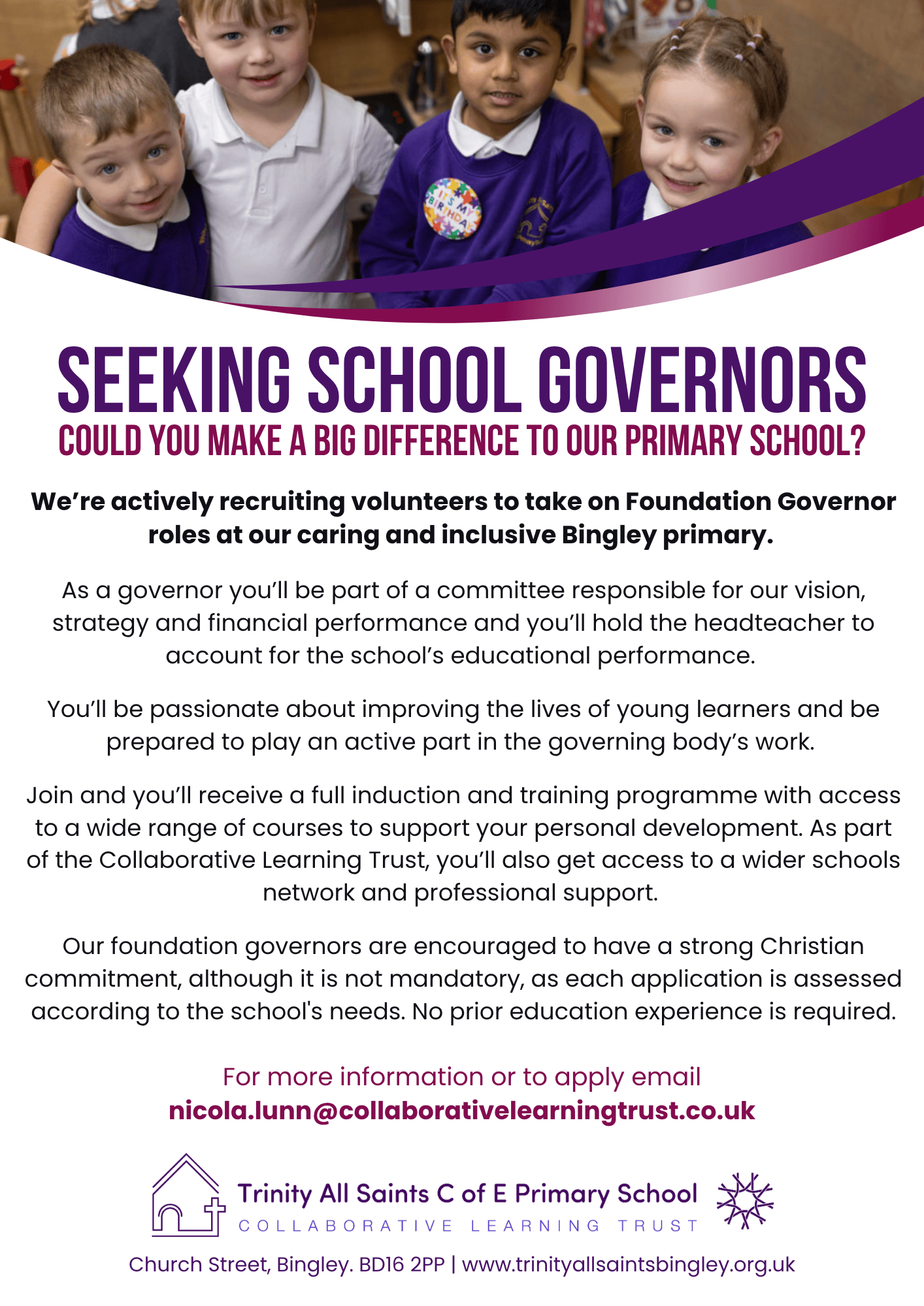 To contact our Chair of Governors Martyn Weaver, please contact office@trinity.bradford.sch.uk.